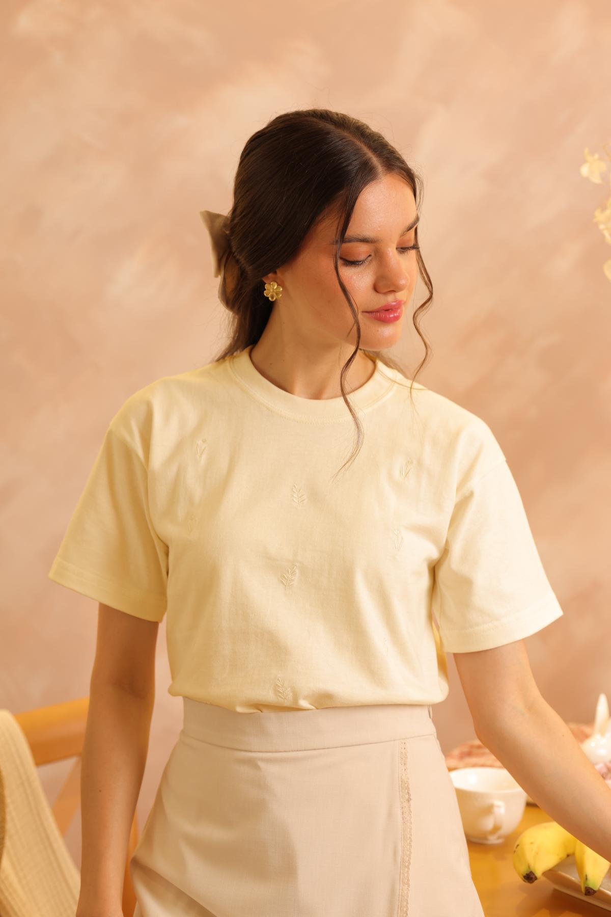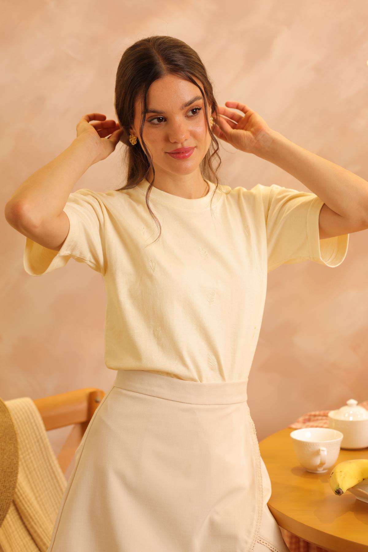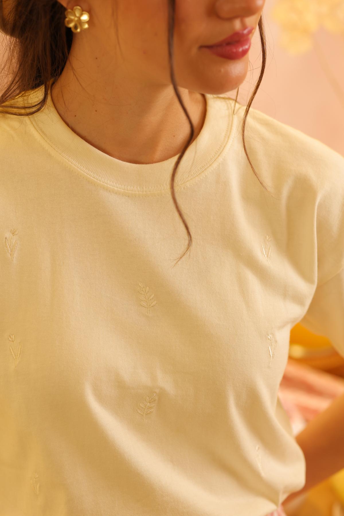 Basico de silueta cómoda con pequeños detalles tejidos que evocan flores y texturas naturales. Una prenda fresca, ideal para el día a día, que aporta un toque especial sin perder la sensación de ligereza. Perfecto para un look moderno y femenino.