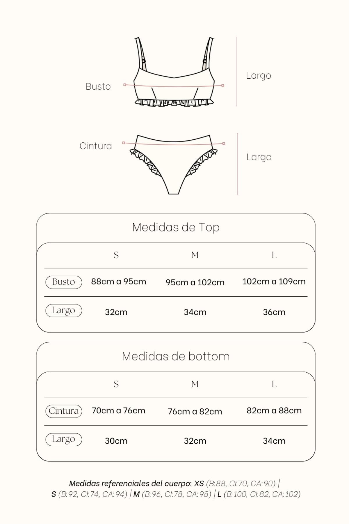 INFORMACIÓN: Modelo usa talla S, medidas de Brenda: Busto (76cm) Cintura (65cm) Cadera (89cm) Altura (1.68cm)