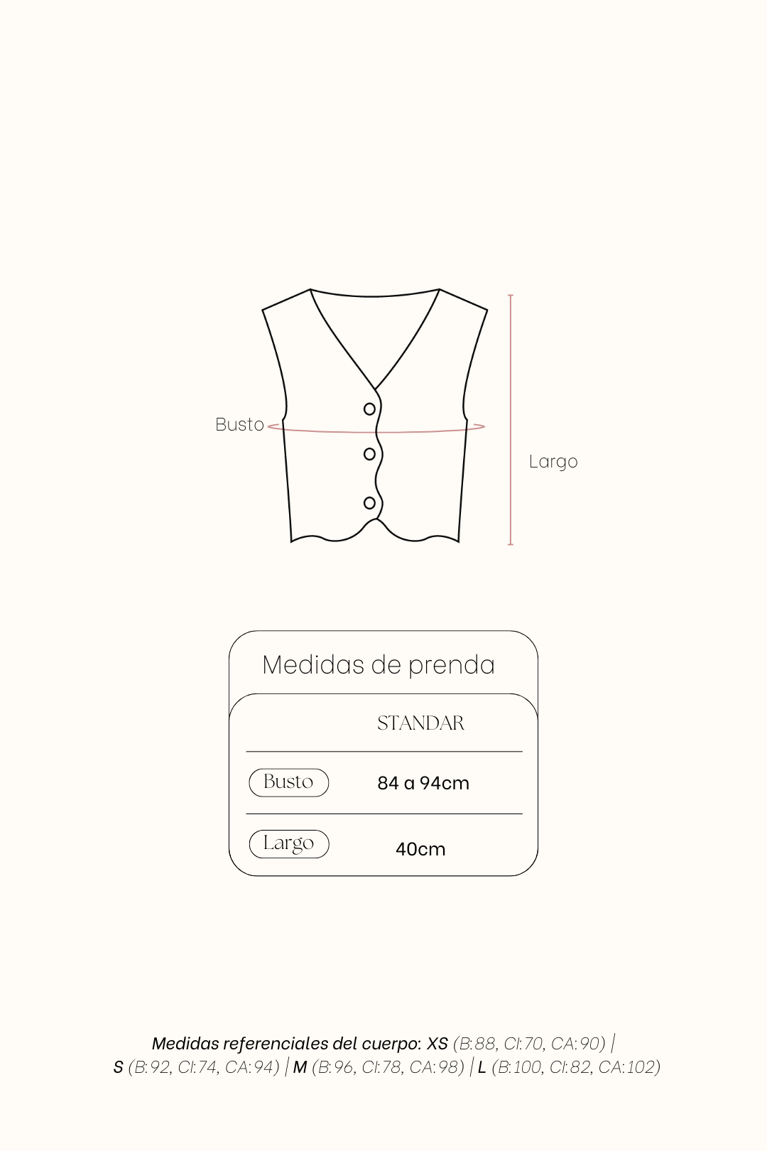 NOTA:Las prendas de fibra natural (algodón, rayón, lino) pueden encoger de 1 a 3cm aprox