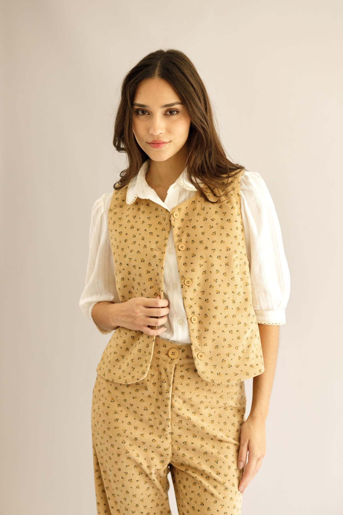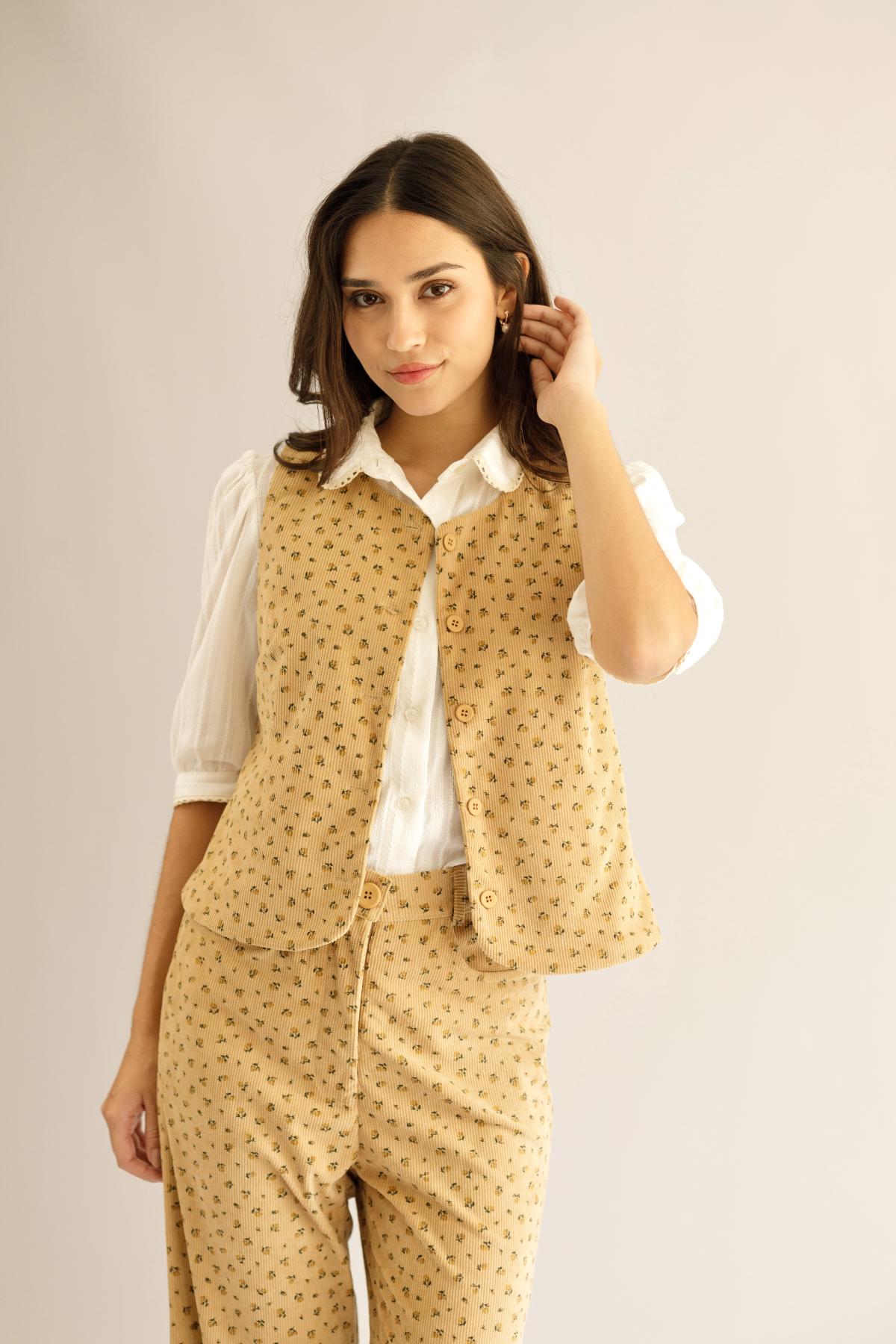 Chaleco Tina Flores_Mostaza