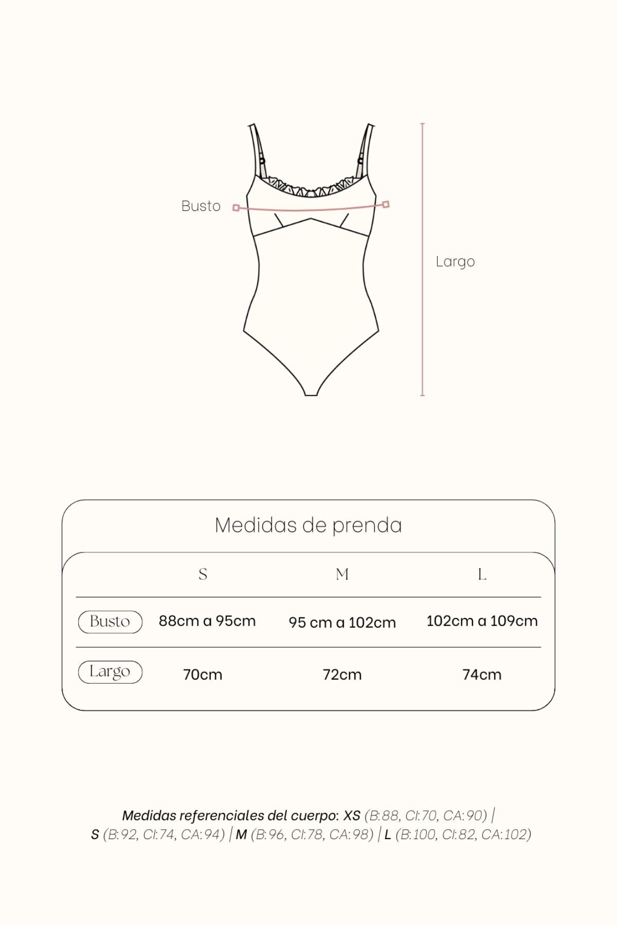 INFORMACIÓN: Modelo usa talla S, medidas de Brenda: Busto (76cm) Cintura (65cm) Cadera (89cm) Altura (1.68cm)