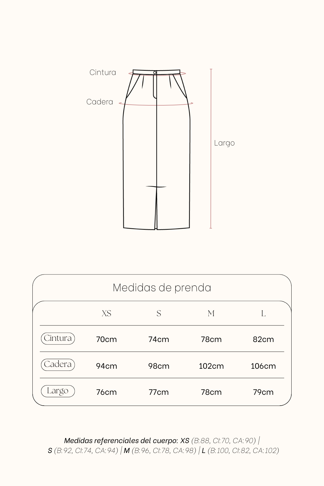 NOTA:Las prendas de fibra natural (algodón, rayón, lino) pueden encoger de 1 a 3cm aprox