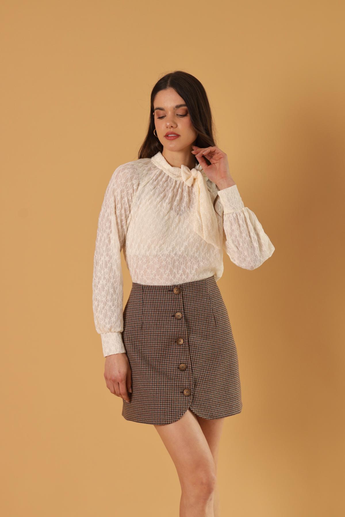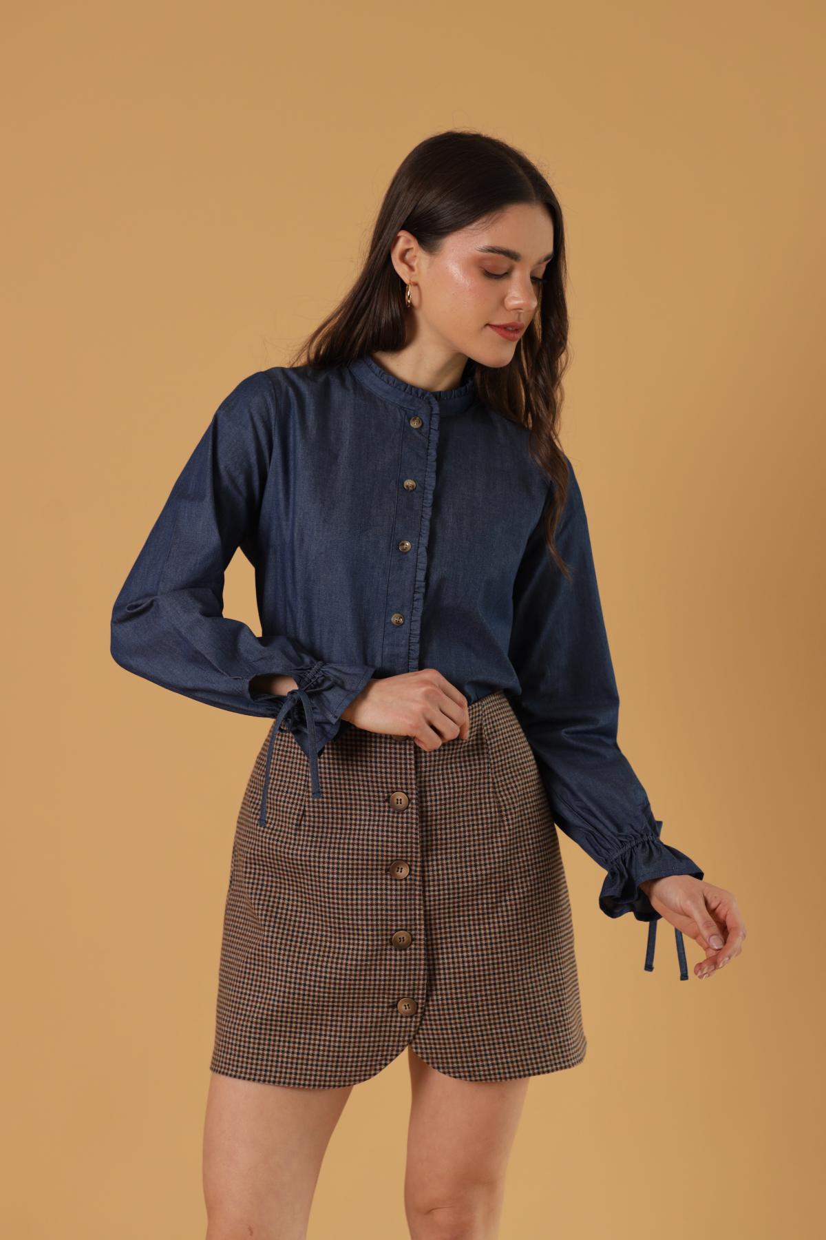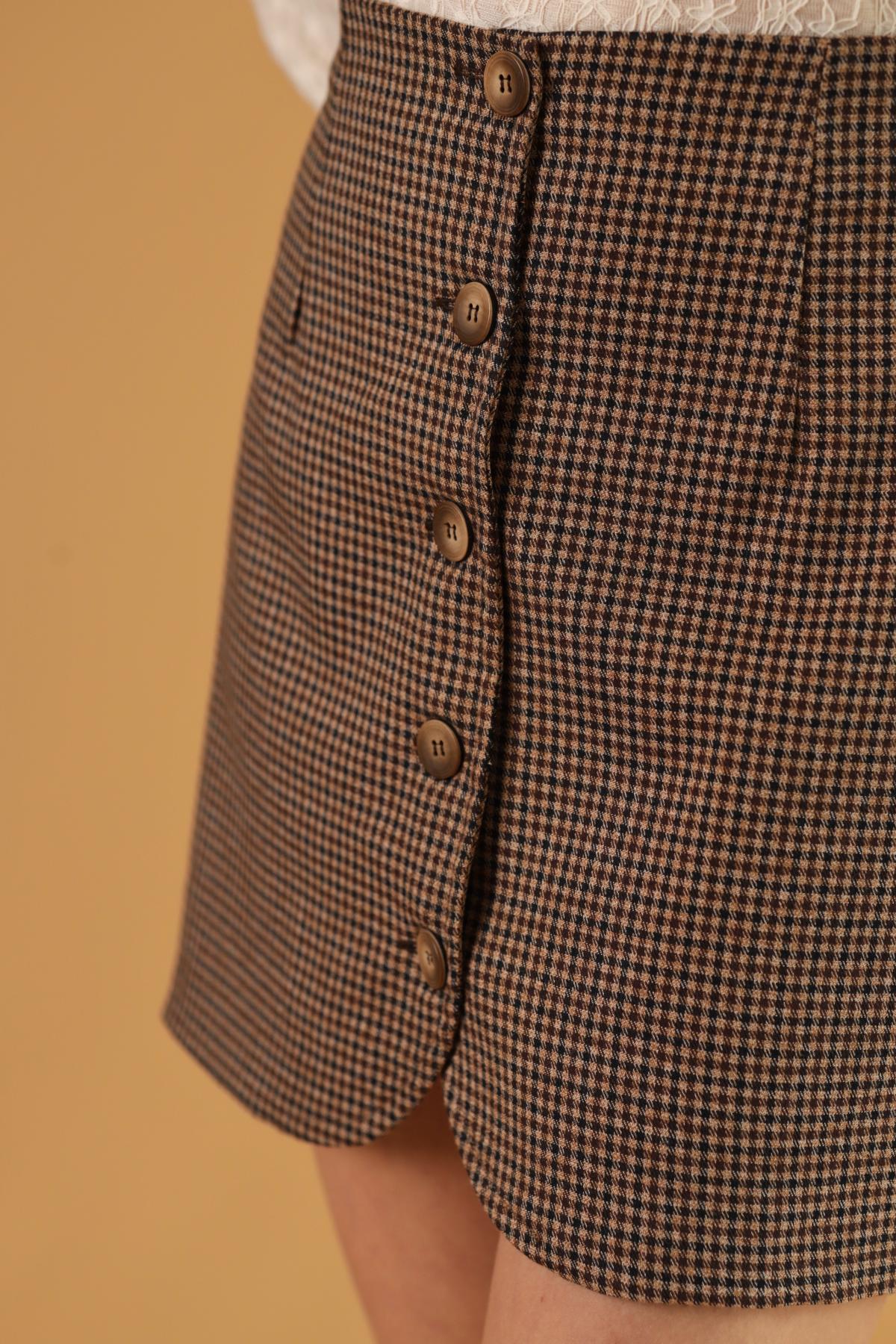 Falda de silueta contemporánea que incorpora detalles curvos en sus tapas delanteras, sus botones con textura en color café serán el toque final, una minifalda con personalidad. Úsala en nuestro modelo de print de cuadros con alguna prenda complementaria neutra, para que esta sea el protagonista. Y nuestra opción en color sólido que te permite jugar con contrastes y texturas.