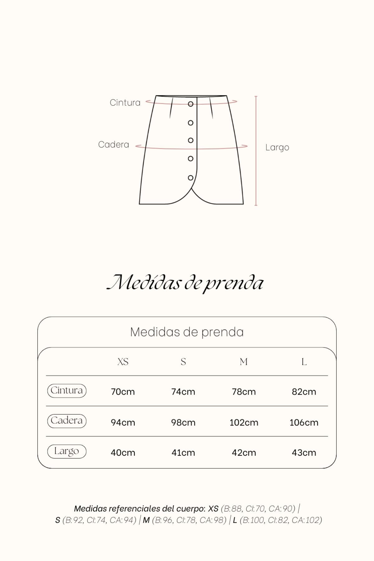 INFORMACIÓN: Modelo usa talla Xs, medidas de Brenda: Busto (76cm) Cintura (65cm) Cadera (89cm) Altura (1.68cm)