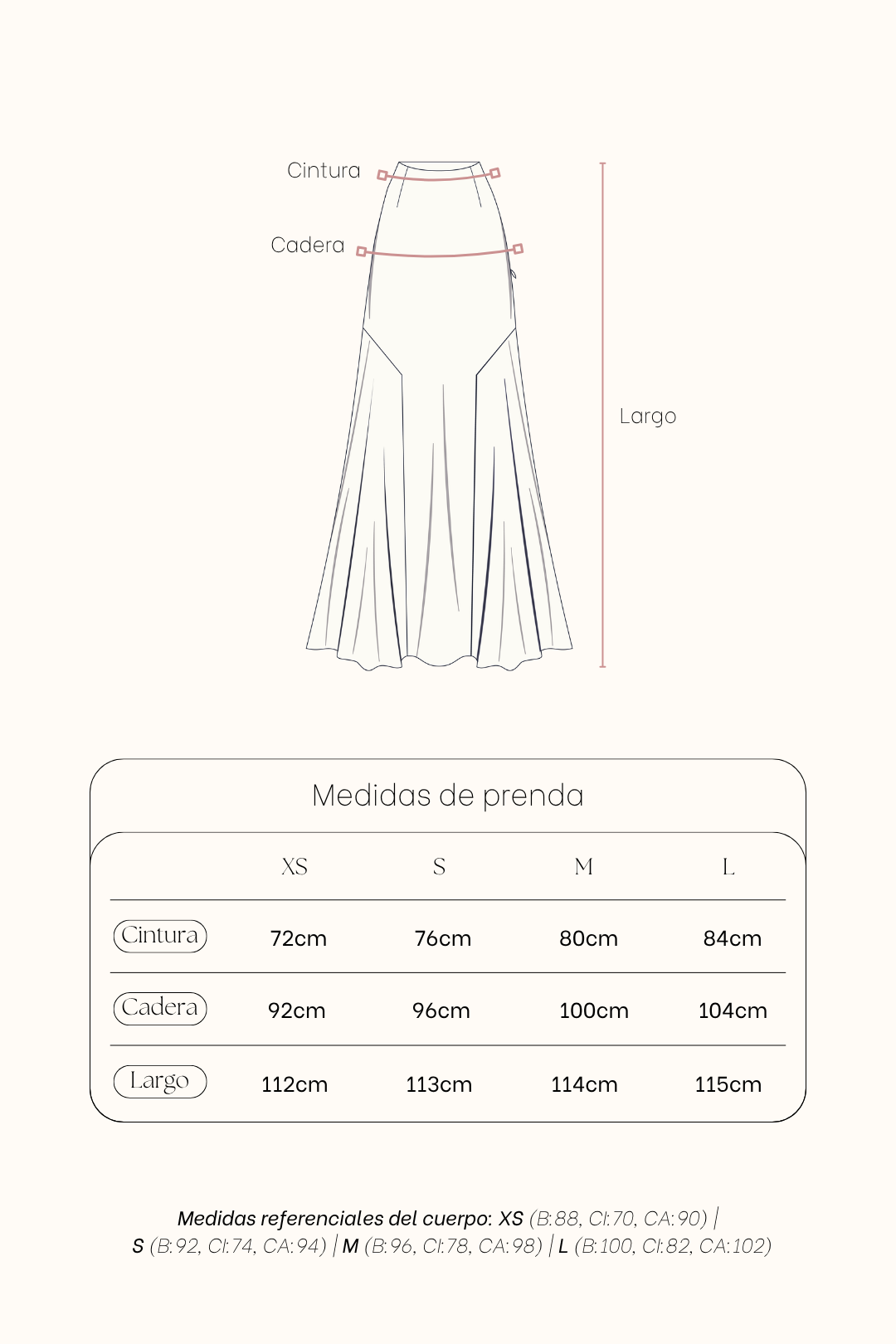 NOTA:Las prendas de fibra natural (algodón, rayón, lino) pueden encoger de 1 a 3cm aprox