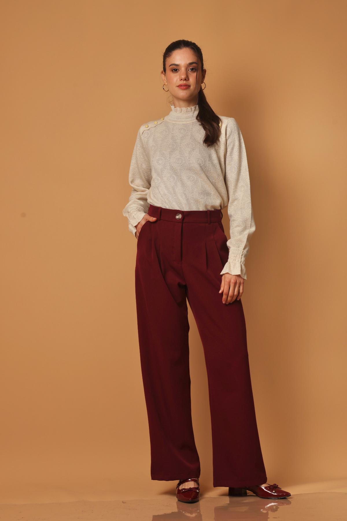 El clásico de la casa, corte recto y pinzas dobles súper favorecedoras para tu figura, bolsillos delanteros y presillas; sin duda el pantalón que va con todo. Esta vez, te lo traemos en colores muy elegantes y versátiles: Gris y burgundy