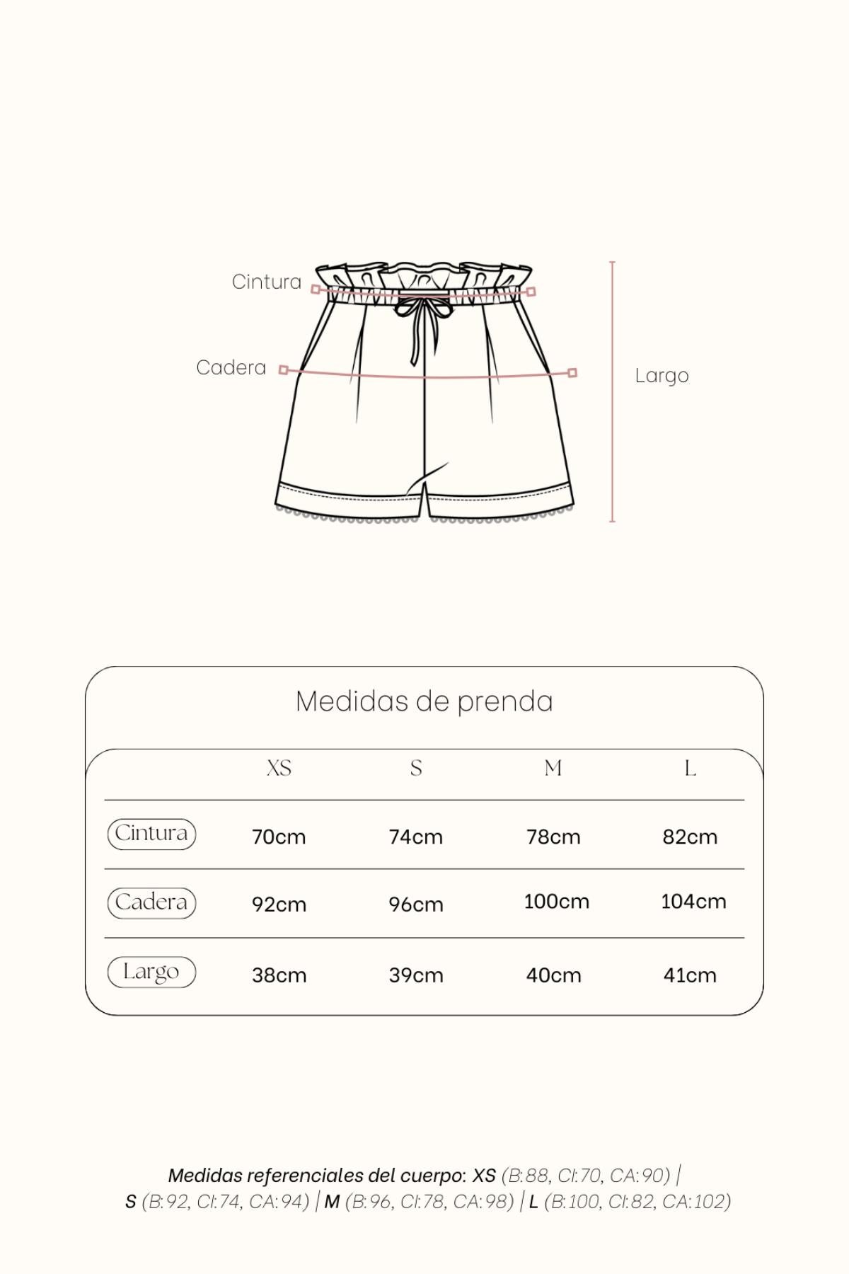 Short casual de tiro alto con pretina elástica que se adapta al cuerpo brindando comodidad. Cuenta con bolsillos laterales y detalle de bolillo en zona de basta. Su silueta relajada permite libertad de movimiento, perfecto para llevar en set con la Camisa Clara