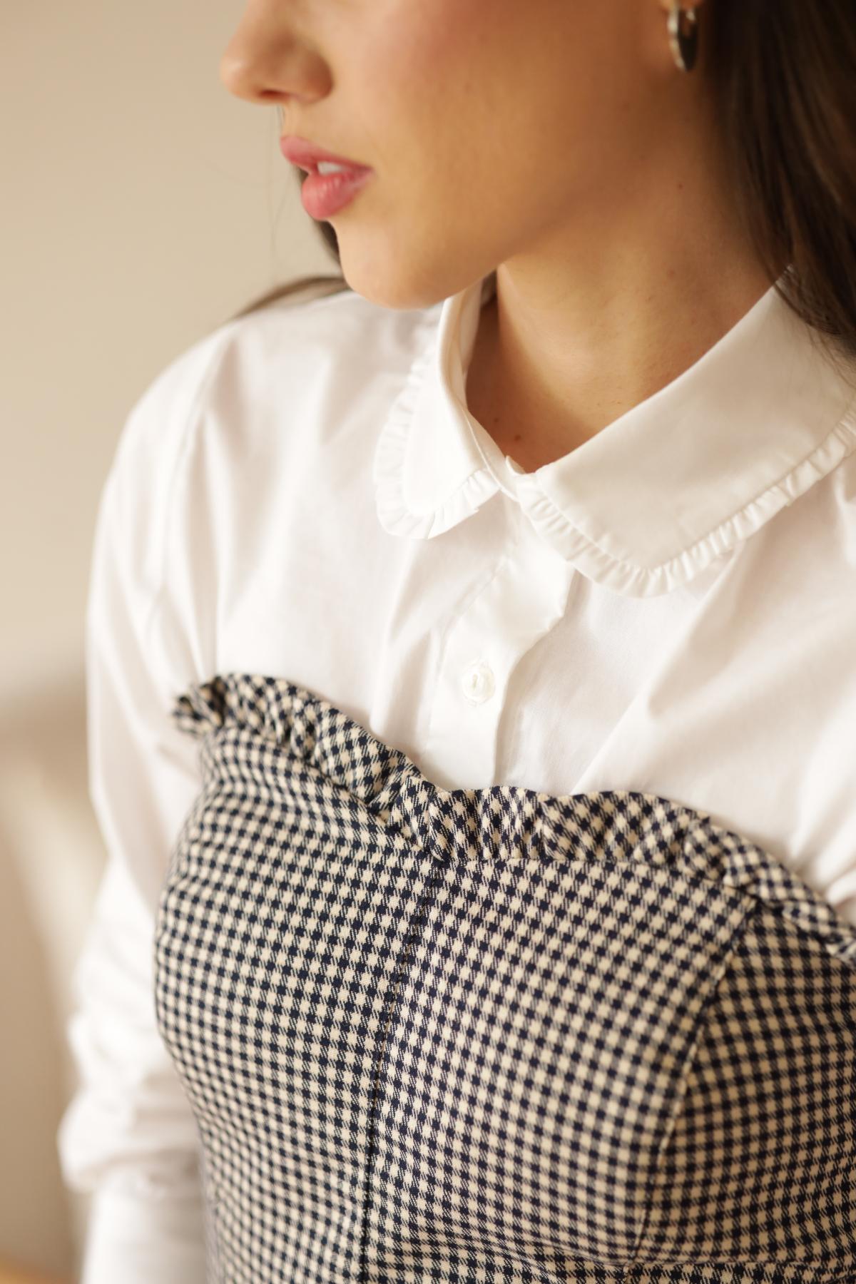 Corpiño con escote en forma de corazón y detalles de fruncido. El diseño ceñido es ideal para resaltar tu figura. Este corpiño tiene la posibilidad de llevarse de manera reversible, es decir podrás usarlo por su lado original con patrón o por el lado interior de color solido.