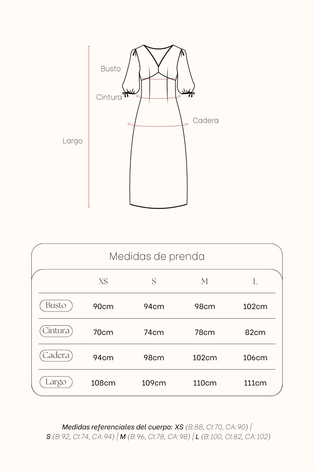 NOTA:Las prendas de fibra natural (algodón, rayón, lino) pueden encoger de 1 a 3cm aprox