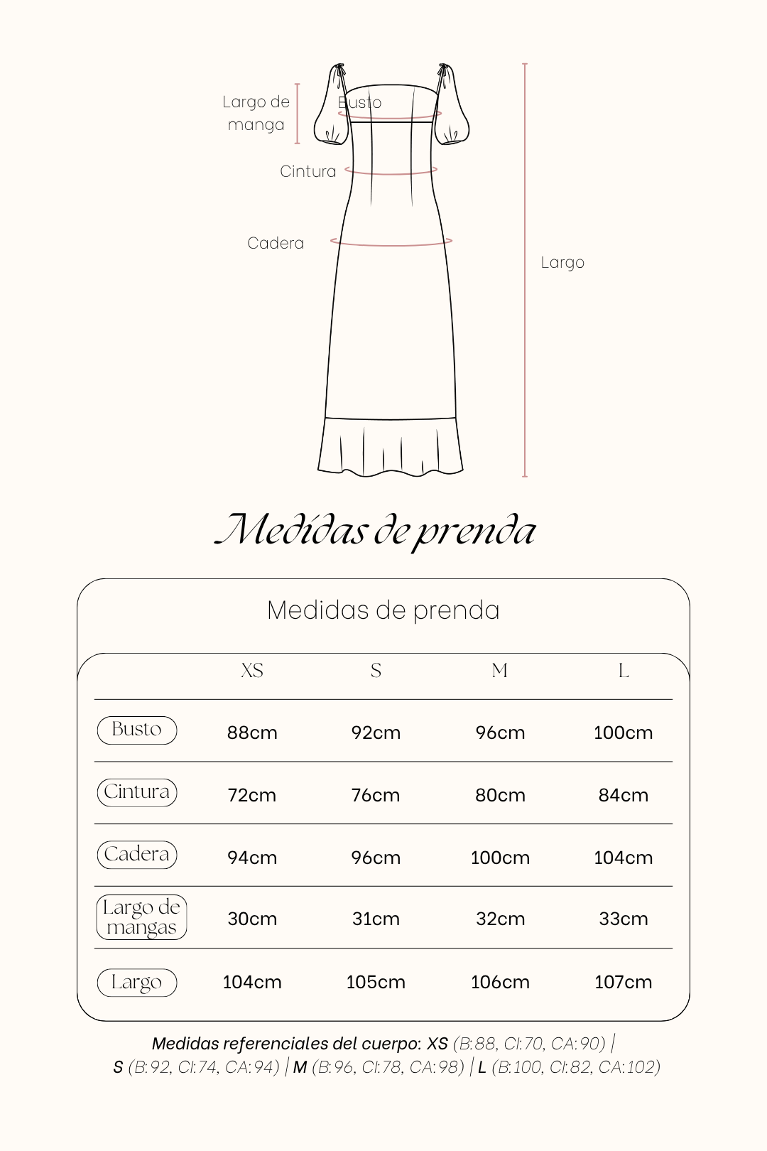 INFORMACIÓN: Modelo usa talla Xs, medidas de Brenda: Busto (76cm) Cintura (65cm) Cadera (89cm) Altura (1.68cm)