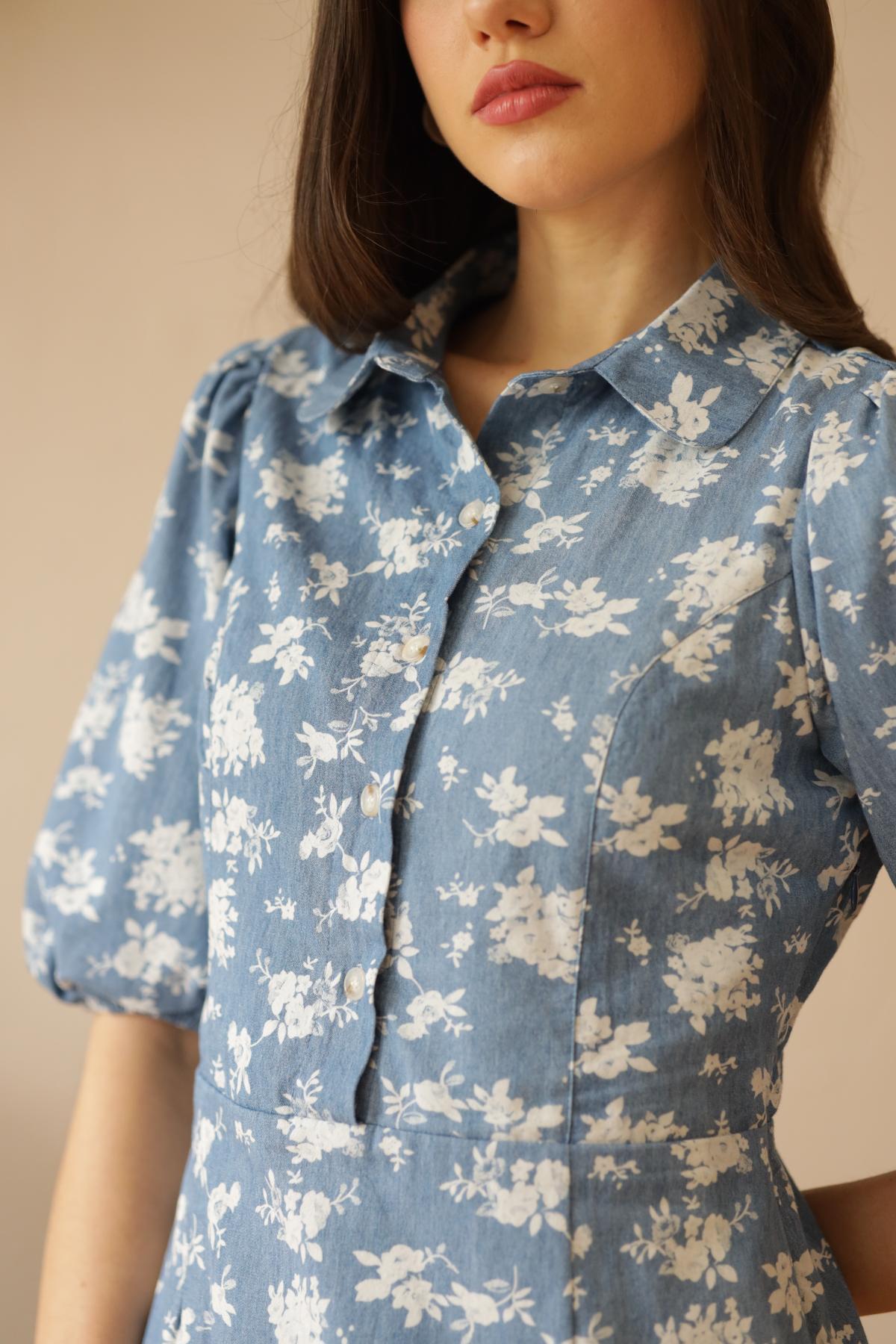 Vestido camisero corto, con cuello redondo y mangas abullonadas. La figura del vestido te hará lucir cálida y femenina a su vez. Además al ser de tela chambray, te dará la versatilidad de usarlo como una pieza de jean básica. Añadiendo capas si deseas complementarlo con algo más o simplemente lucirlo de manera independiente.