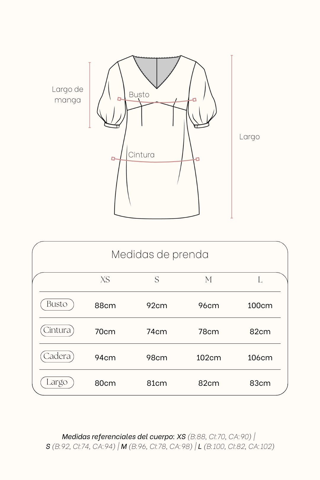 INFORMACIÓN: Modelo usa talla XS, medidas de Brenda: Busto (76cm) Cintura (65cm) Cadera (89cm) Altura (1.68cm)